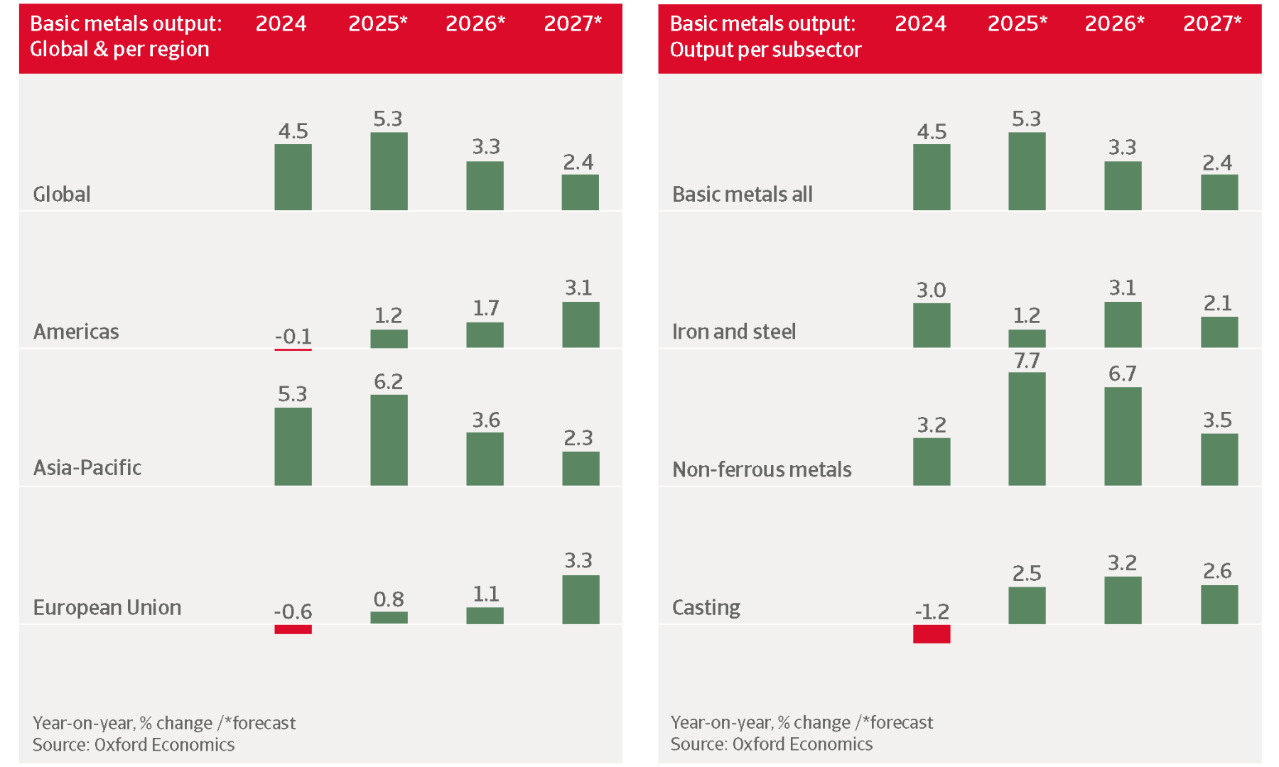 While basic metals output is expected to recover by 5.7% in 2027, a full rebound to pre-pandemic levels over the coming years is not on the cards.